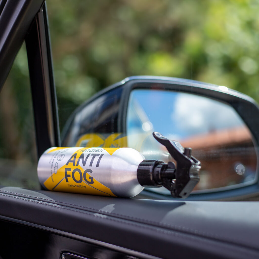 Antifog Nano coating for glass and plastic that prevents fogging. It is designed for interior vehicle windows, mirrors, ski goggles, helmet visors. The coating is completely transparent and invisible, resistant to temperature changes, and environmentally friendly.