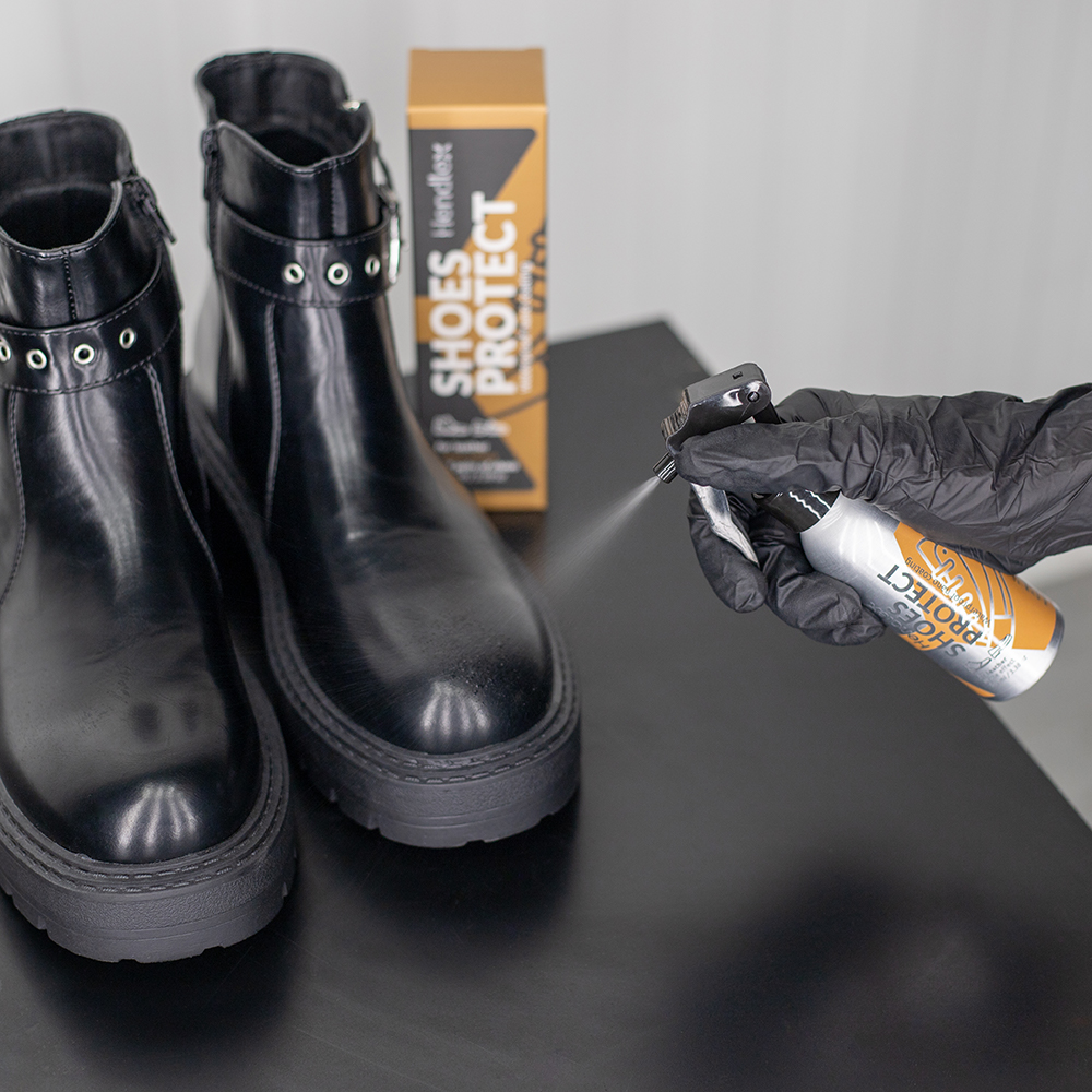 Shoes protect leather – matte effect nano coating designed for leather shoes. This coating enhances the color of the leather without giving it any additional shine. Forming a thin hydrophobic layer, it provides a reliable and long-lasting protection against moisture and dirt. Treated leather repels water, mud, and dirt, making it possible to clean your shoes by simply giving them a quick wipe with a cloth. The coating is water-based and environmentally friendly.